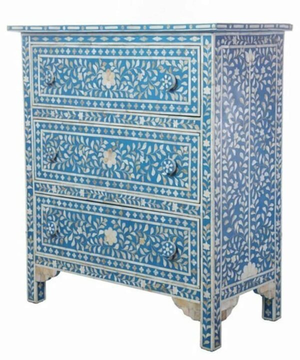 Floral Design Mother of Pearl Inlay Chest of 3 Drawers