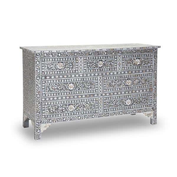 Floral Design Mother of Pearl Inlay 7 Drawer Dresser