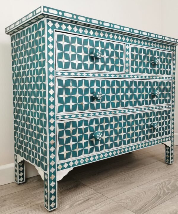 Star Design Mother of Pearl Inlay Chest of 4 Drawers