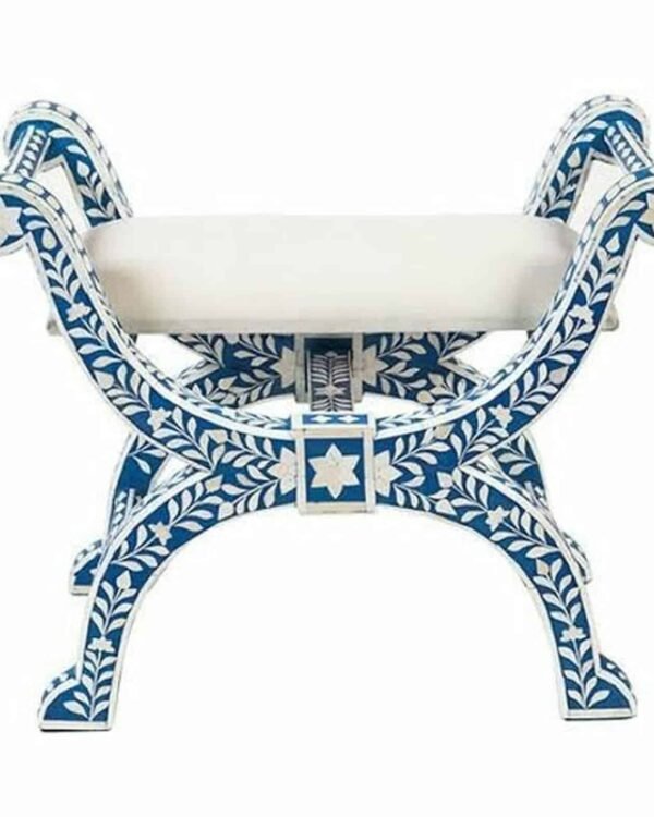 Floral Bone Inlay Ottoman / Roman Stool / Provincial Seating