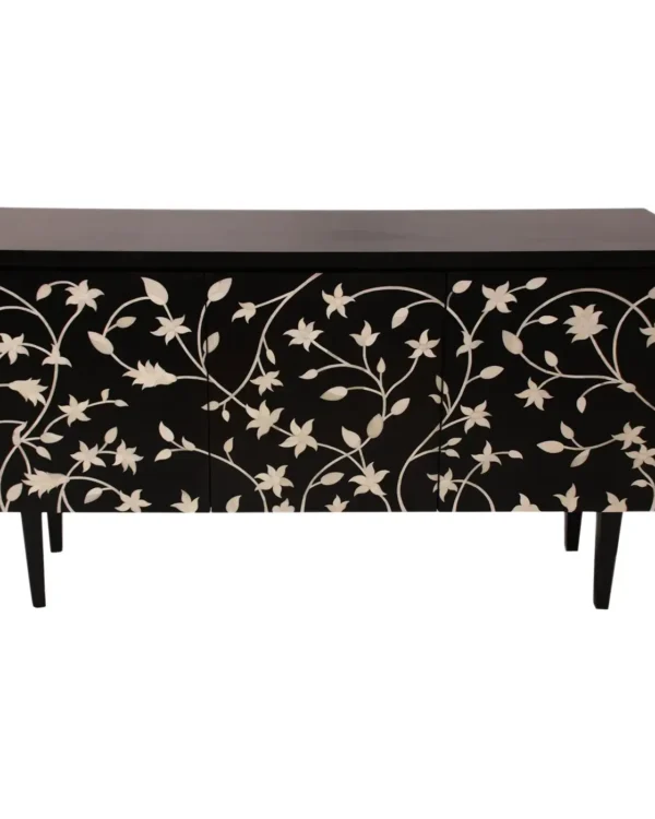 Bone Inlay Floral Chest of 3 Drawers Tapered Edges