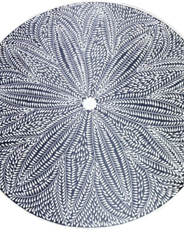 Bone Inlay Floral Headboard / Bedhead Dyed Blue