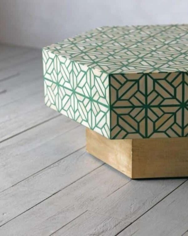 Bone Inlay Coffee Table Floral Intertwine with Brass Polished Base