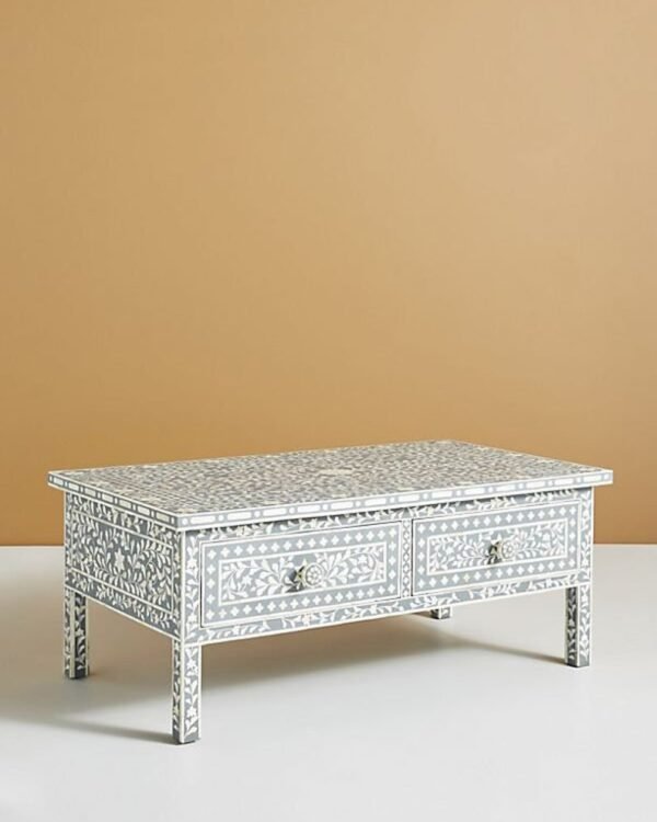 Floral Bone Inlay Coffee Table with 2 Drawers
