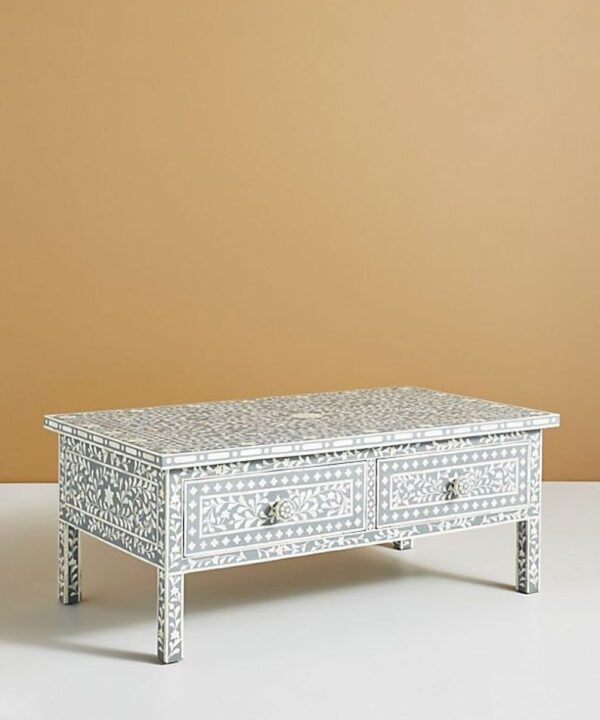 Floral Bone Inlay Coffee Table with 2 Drawers