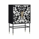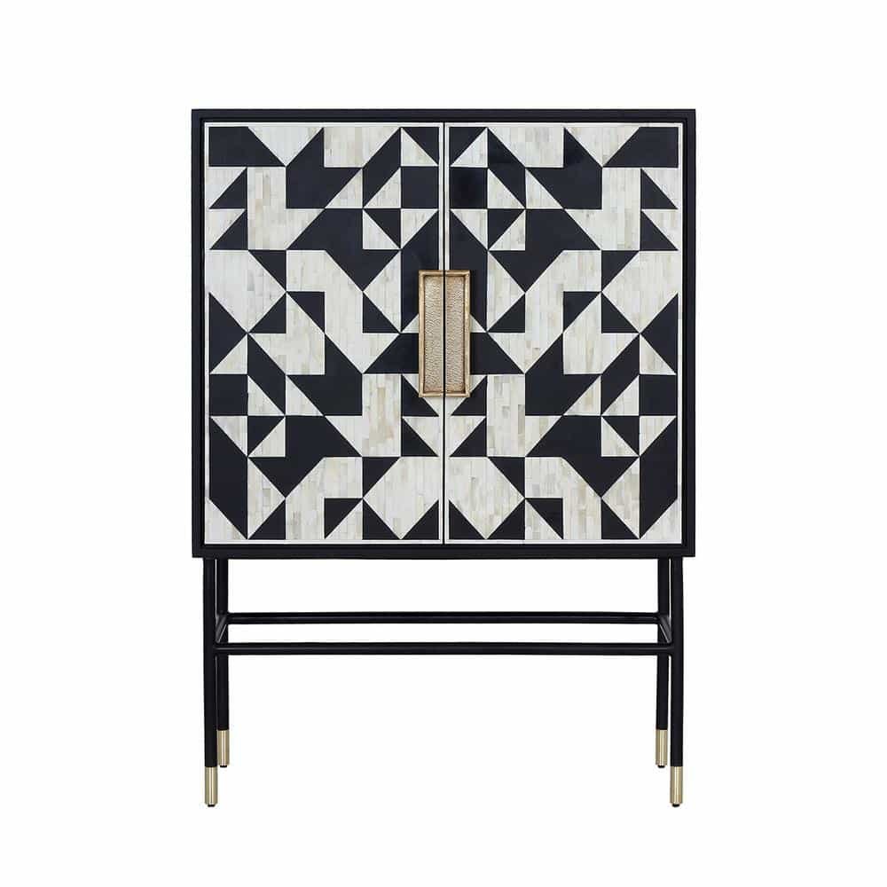 Bone Inlay Bar Cabinet in Black and White Features: