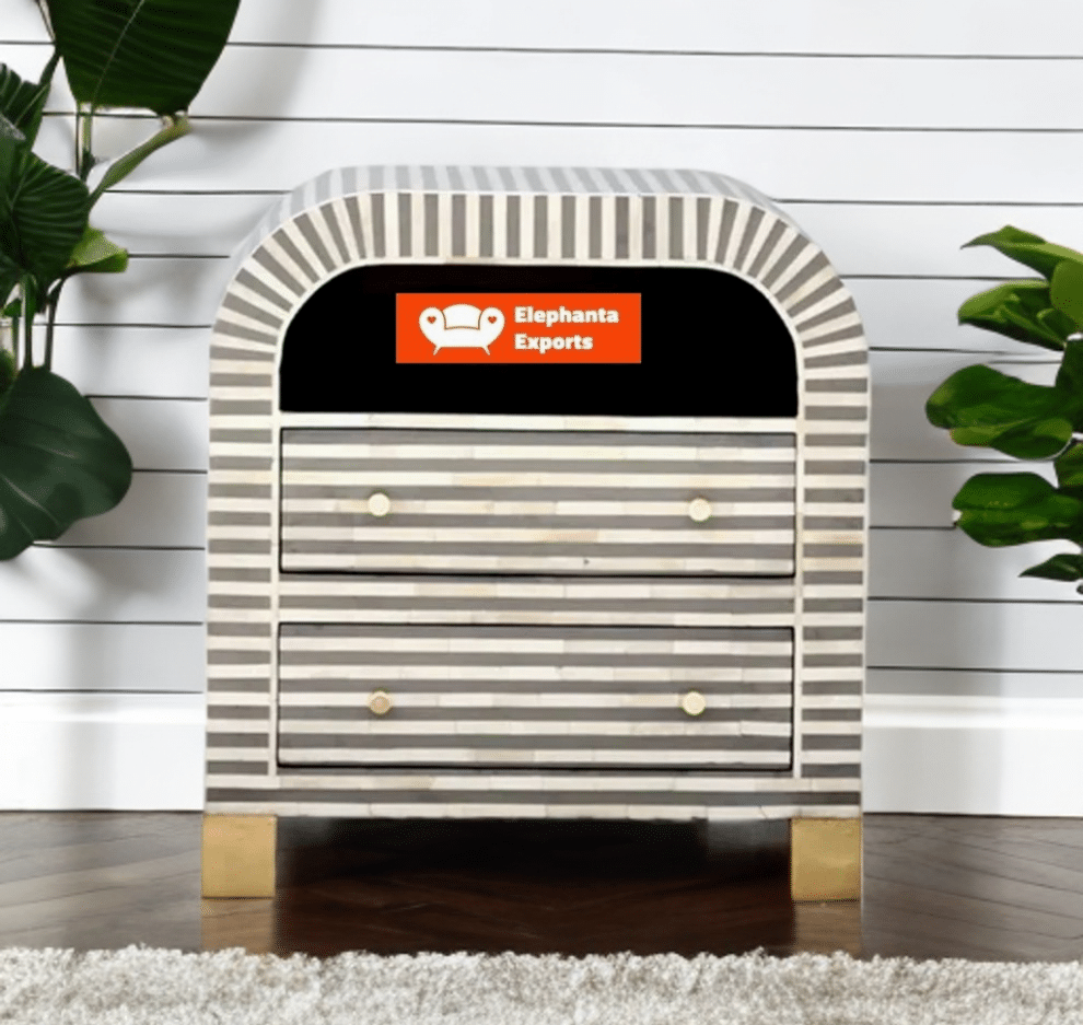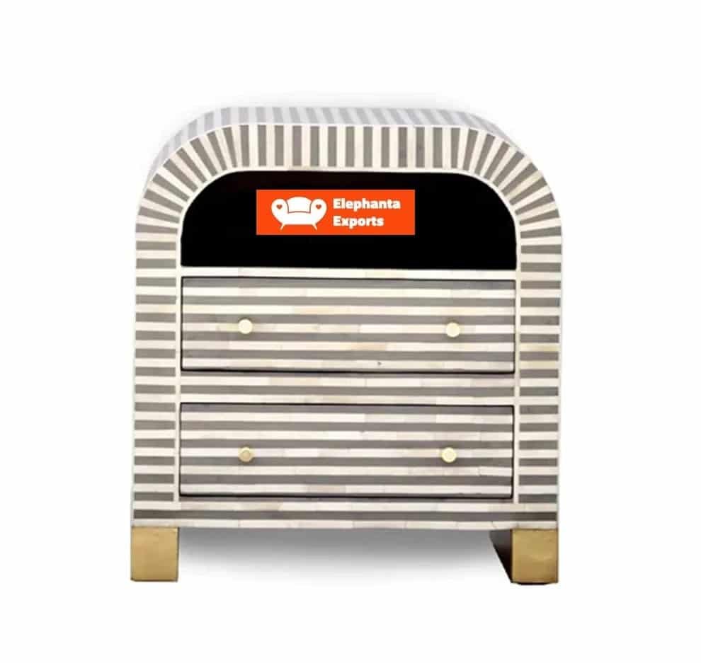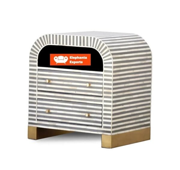 Variations in the natural product color, pattern, and shade are inherent and unique characteristics to be expected with this Bone Inlay Bedside Waterfall Striped Grey. No two tables are ever exactly alike, with thousands of intricate pieces hand-laid to complete this delightful masterpiece. Each product is unique and may have different variations with anomalies due to handmade in nature.