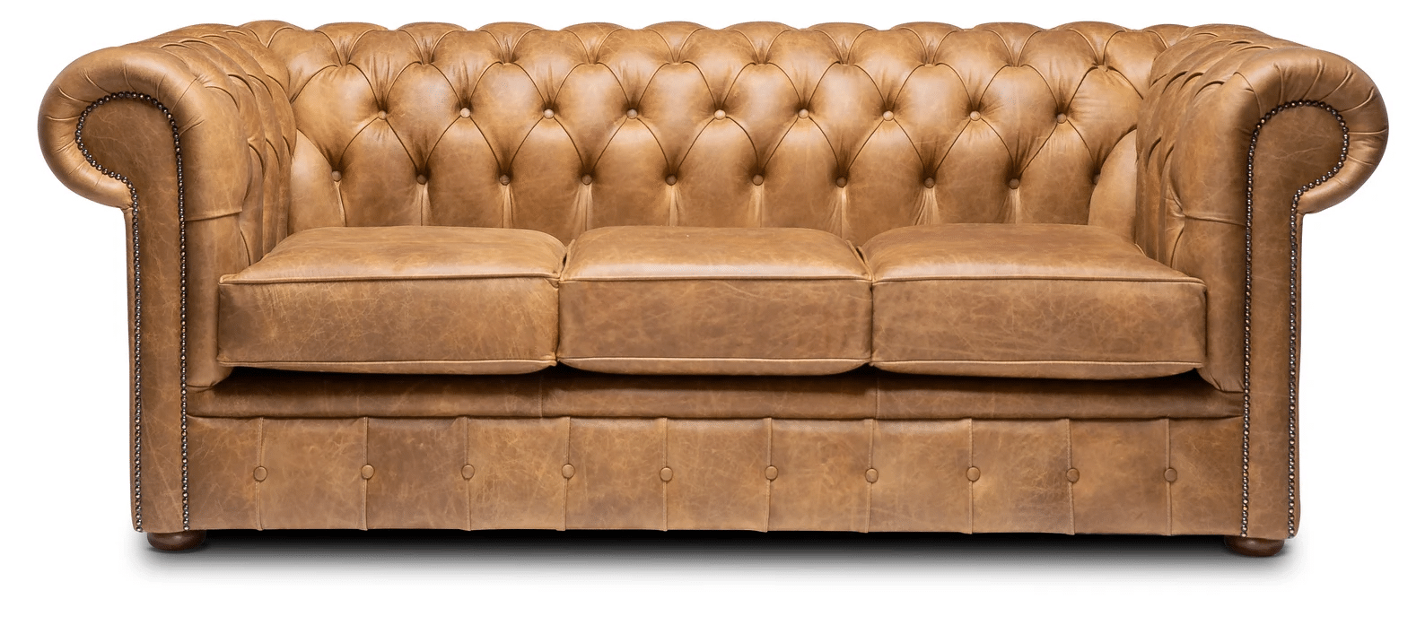 This Chesterfield Real Leather Sofa blends rich textures with classic tufted detailing for a warm, luxurious presence. A refined, statement-making piece crafted for elegant, timeless interiors.