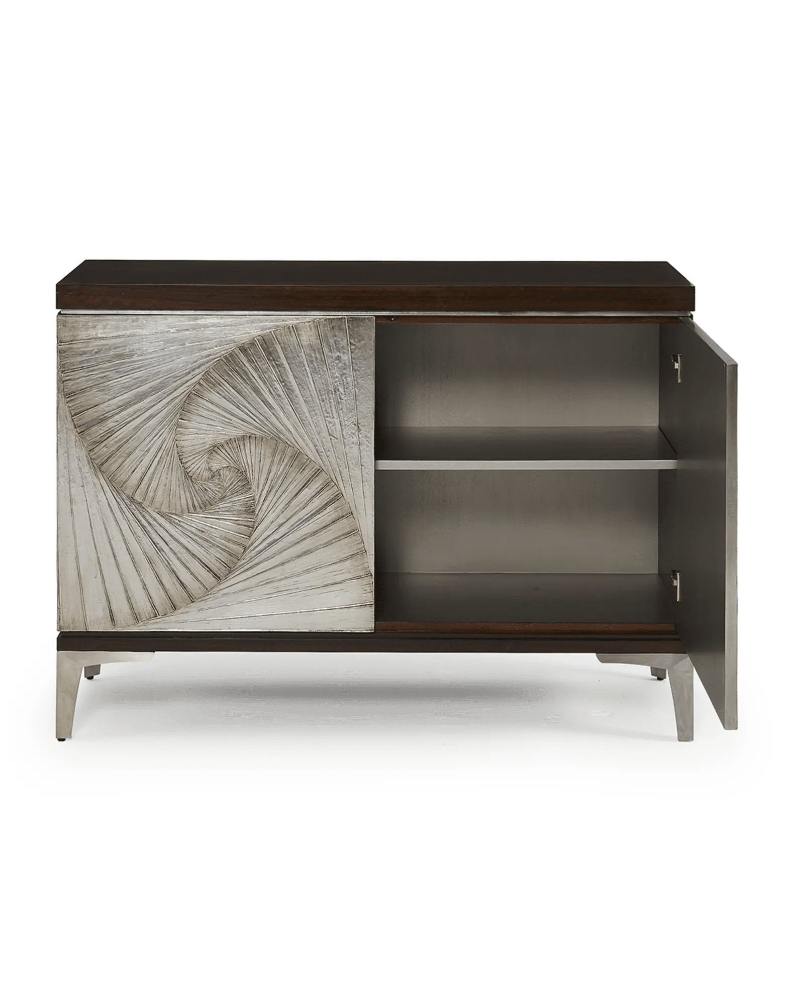 Variations in the natural product color, pattern, and shade are inherent and unique characteristics to be expected with the Finch Stylish Silver Cabinet. No two tables are ever exactly alike, with thousands of intricate pieces hand-laid to complete this delightful masterpiece. Each product is unique and may have different variations with anomalies due to handmade in nature.