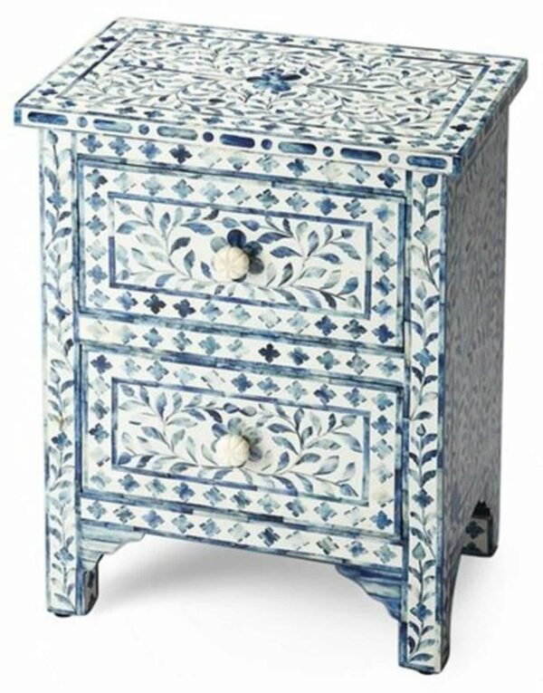 Variations in the natural product color, pattern, and shade are inherent and unique characteristics to be expected with Floral Colored Bone Bedside. No two tables are ever exactly alike, with thousands of intricate pieces hand-laid to complete this delightful masterpiece. Each product is unique and may have different variations with anomalies due to handmade in nature.