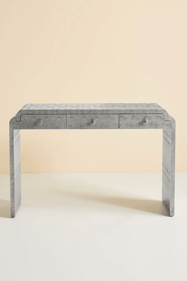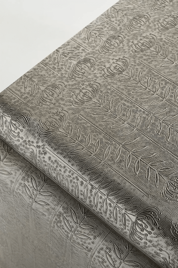 A breathtaking German Silver Embossed Console, radiating intricate handcrafted patterns and a warm metallic glow. A luxurious statement piece that enriches refined interiors with timeless artistic splendor.