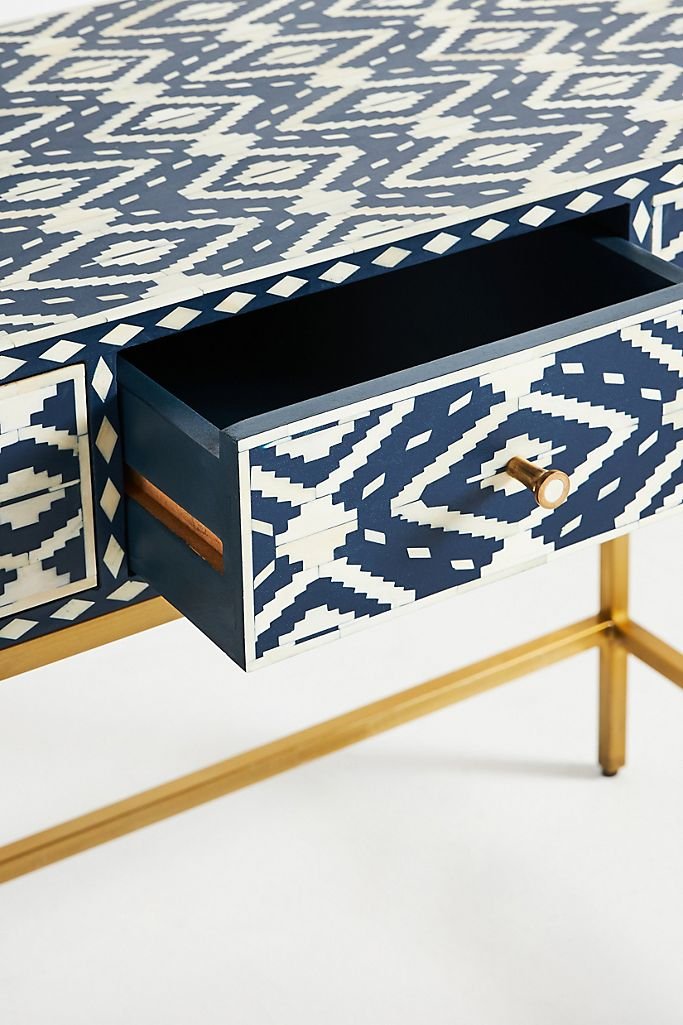 Ikat Bone Inlay Console / Vanity in Blue