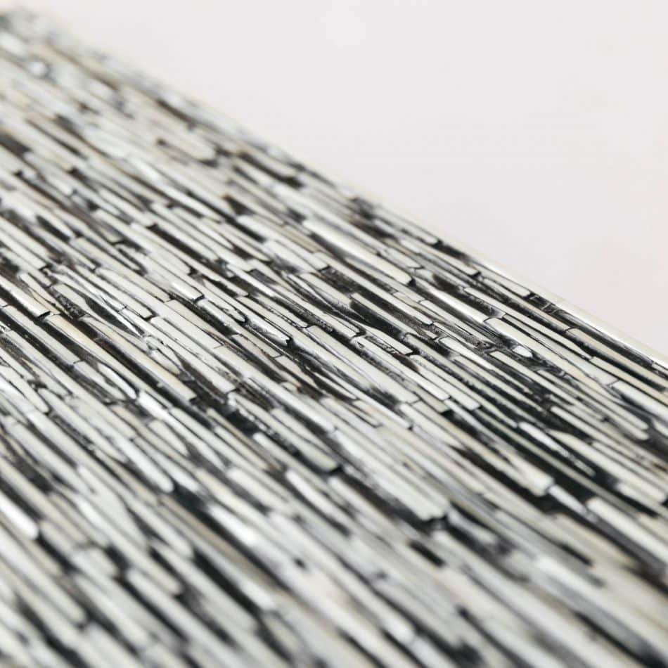 Each Modern Bone Inlay Console Black has been handcrafted in a process that can take weeks using honorably sourced Bone / Mother of Pearl. Delicately carved pieces of Bone/Mother of Pearl have been individually inlaid onto a wooden frame in an elaborate pattern. Layers of colored resin are then used to fill around the bone/mop. Finally, the backside and inside areas are painted with the matching colors.