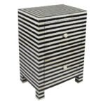 Variations in the natural product color, pattern, and shade are inherent and unique characteristics to be expected with Monochrome Bedside Bone 2 Drawers. No two tables are ever exactly alike, with thousands of intricate pieces hand-laid to complete this delightful masterpiece. Each product is unique and may have different variations with anomalies due to handmade in nature.