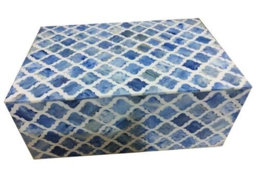 Each piece of Mughal Bone Inlay Box has been handcrafted in a process that can take weeks using honorably sourced Bone / Mother of Pearl. Delicately carved pieces of Bone/Mother of Pearl have been individually inlaid onto a wooden frame in an elaborate pattern. Layers of colored resin are then used to fill around the bone/mop. Finally, the backside and inside areas are painted with the matching colors.