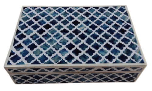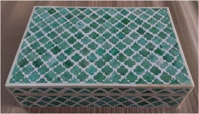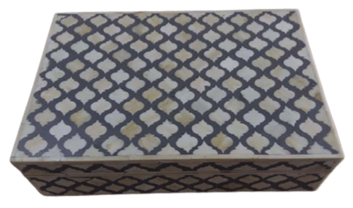 Variations in the natural product color, pattern, and shade are inherent and unique characteristics to be expected with Mughal Bone Inlay Box product. No two tables are ever exactly alike, with thousands of intricate pieces hand-laid to complete this delightful masterpiece. Each product is unique and may have different variations with anomalies due to handmade in nature.