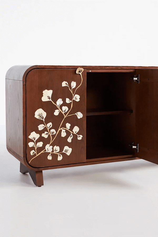 A stunning Padma Inlay Buffet, crafted with intricate artistry and warm, refined textures. A luxurious focal piece that brings timeless elegance to sophisticated interiors.