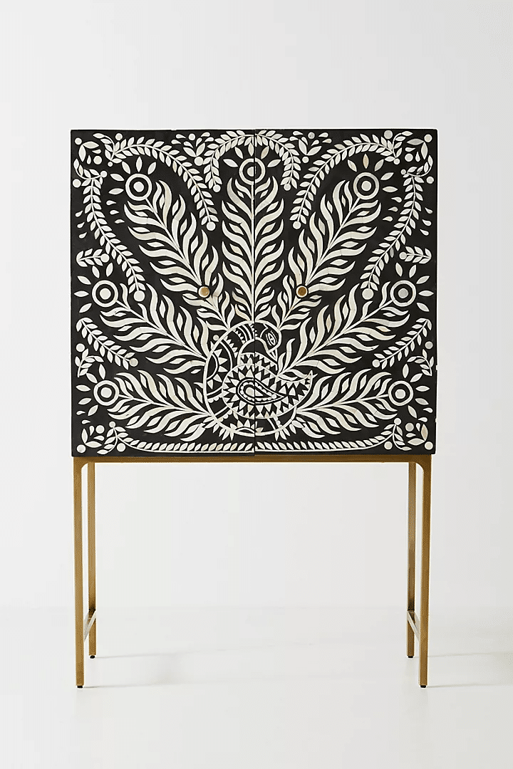 Peacock Bone Inlay Bar Cabinet