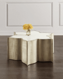 The Periwinkle Brass Coffee Table is a harmonious blend of warmth and sophistication. The wooden base provides a natural and inviting appeal, while the brass cladding adds a touch of glamour and elegance. This combination creates a striking centerpiece that exudes timeless style and charm.