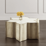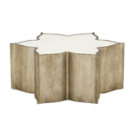The Periwinkle Brass Coffee Table is a harmonious blend of warmth and sophistication. The wooden base provides a natural and inviting appeal, while the brass cladding adds a touch of glamour and elegance. This combination creates a striking centerpiece that exudes timeless style and charm.