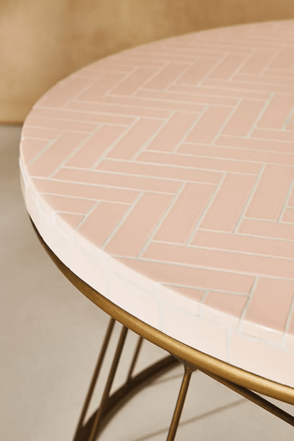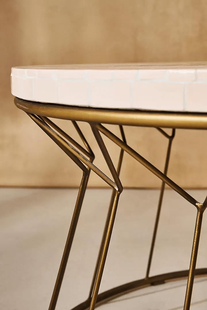 • Material : Wood, Ceramic tile, Brass finished metal base