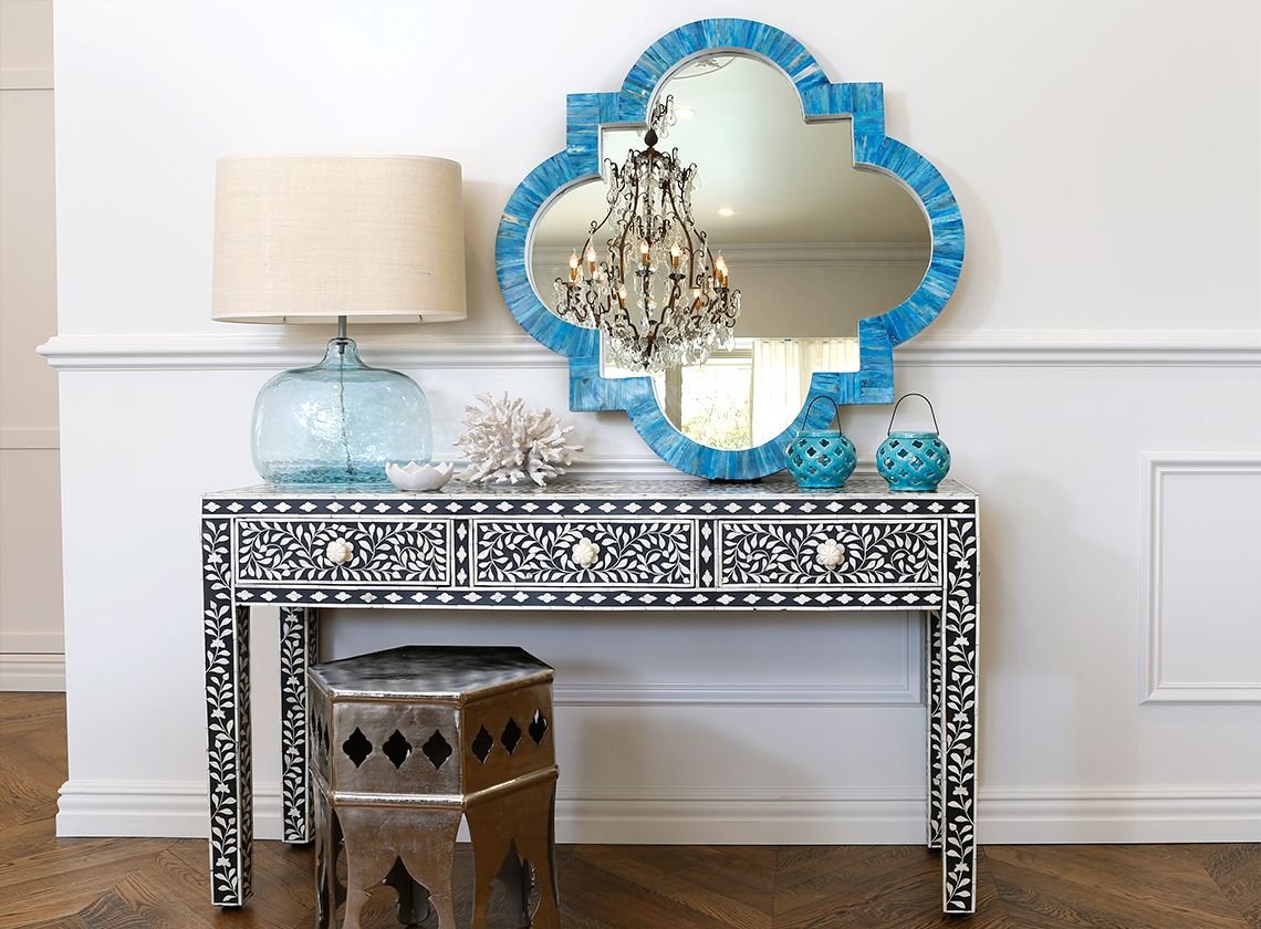 Quatrefoil Bone Inlay Mirror Turquoise Features :