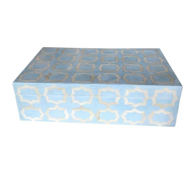 Variations in the natural product color, pattern, and shade are inherent and unique characteristics to be expected with Star Bone Inlay Box. No two tables are ever exactly alike, with thousands of intricate pieces hand-laid to complete this delightful masterpiece. Each product is unique and may have different variations with anomalies due to handmade in nature.
