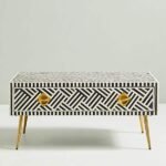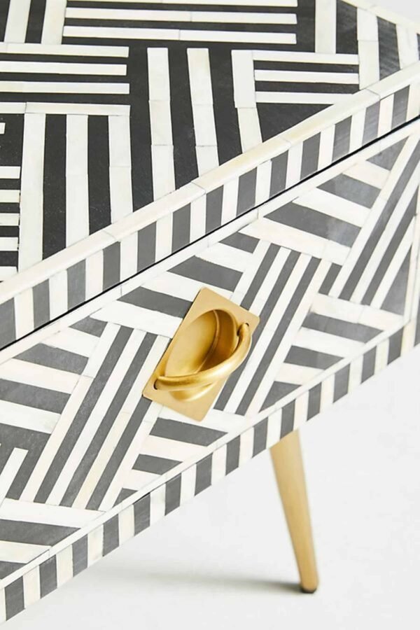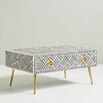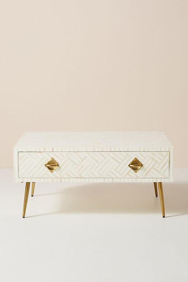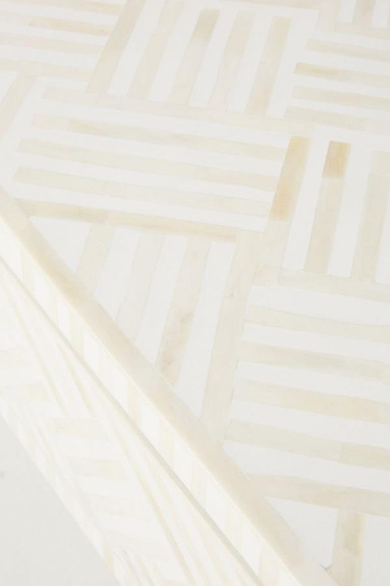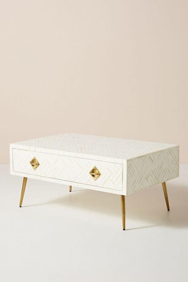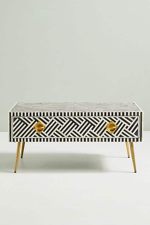 Variations in the natural product color, pattern, and shade are inherent and unique characteristics to be expected with Striped Bone Inlay Coffee Table with 2 Drawers. No two tables are ever exactly alike, with thousands of intricate pieces hand-laid to complete this delightful masterpiece. Each product is unique and may have different variations with anomalies due to handmade in nature.