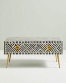 Variations in the natural product color, pattern, and shade are inherent and unique characteristics to be expected with Striped Bone Inlay Coffee Table with 2 Drawers. No two tables are ever exactly alike, with thousands of intricate pieces hand-laid to complete this delightful masterpiece. Each product is unique and may have different variations with anomalies due to handmade in nature.