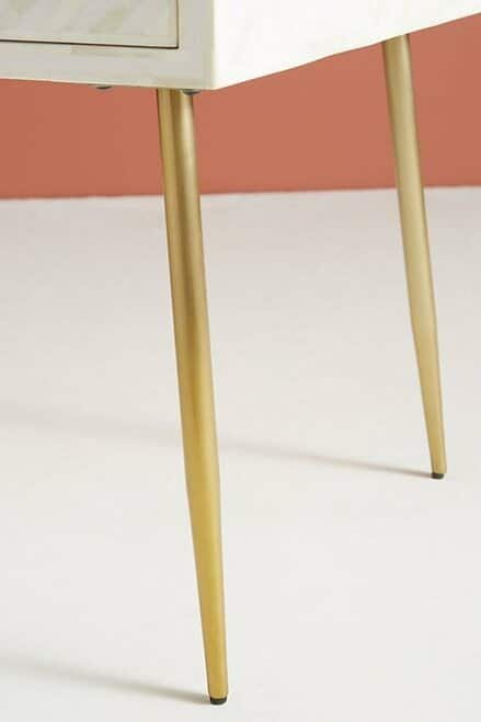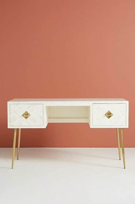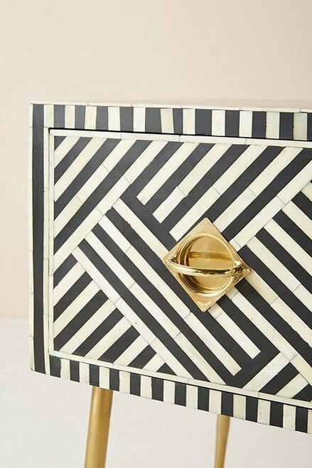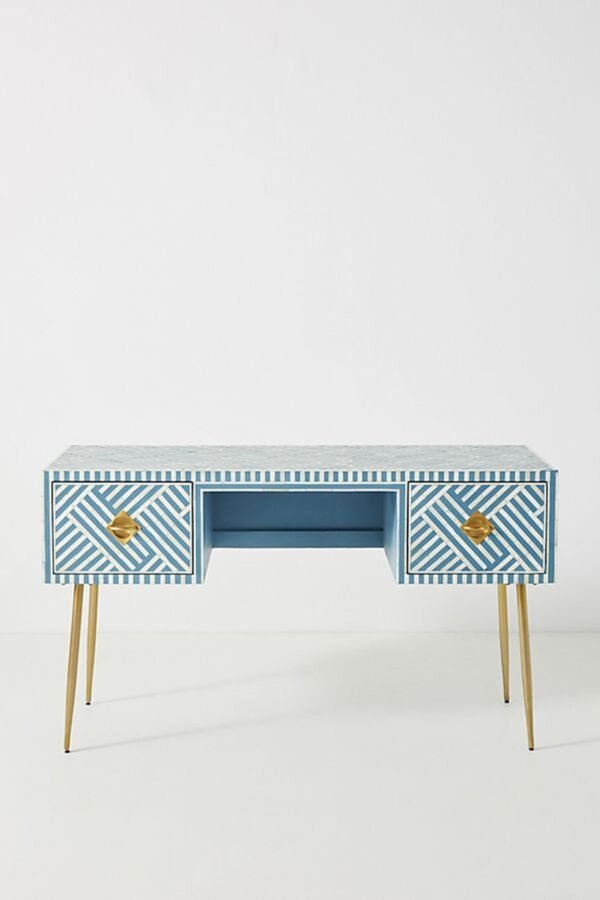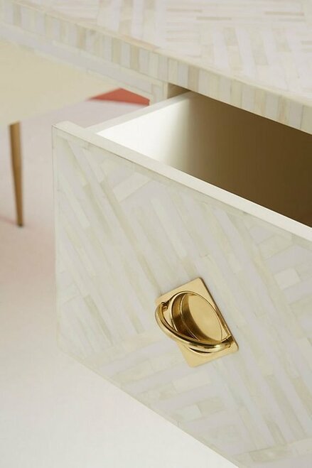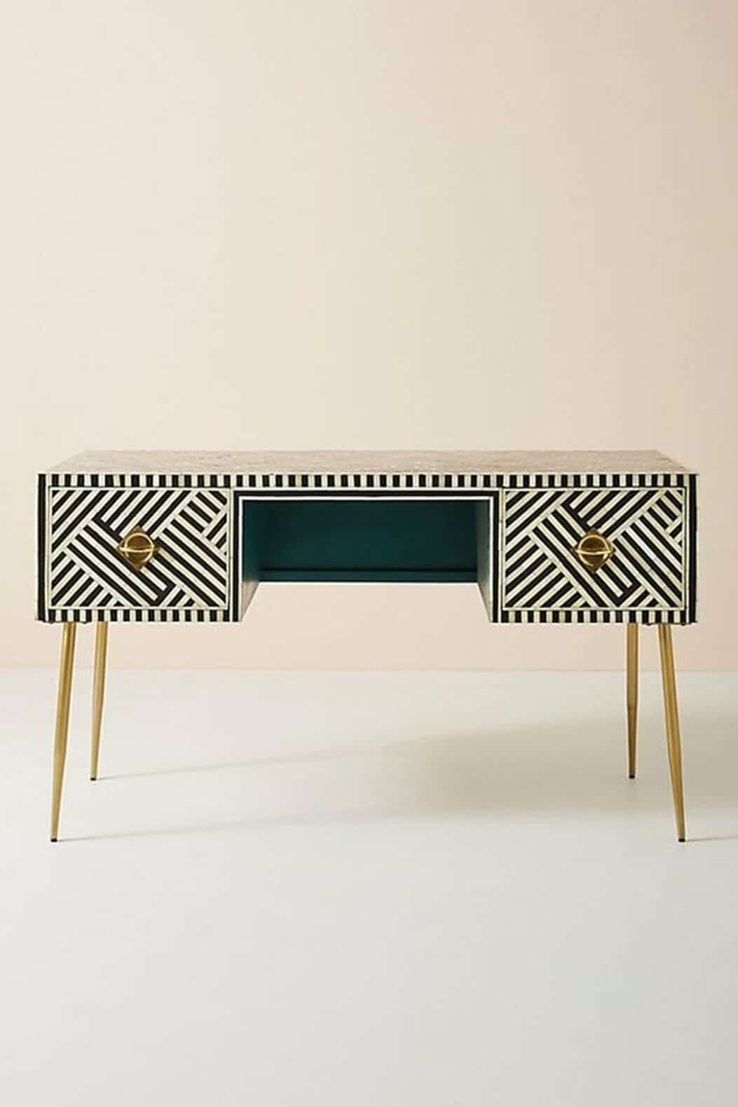 Variations in the natural product color, pattern, and shade are inherent and unique characteristics to be expected with Striped Bone Inlay Console / Desk. No two tables are ever exactly alike, with thousands of intricate pieces hand-laid to complete this delightful masterpiece. Each product is unique and may have different variations with anomalies due to handmade in nature.